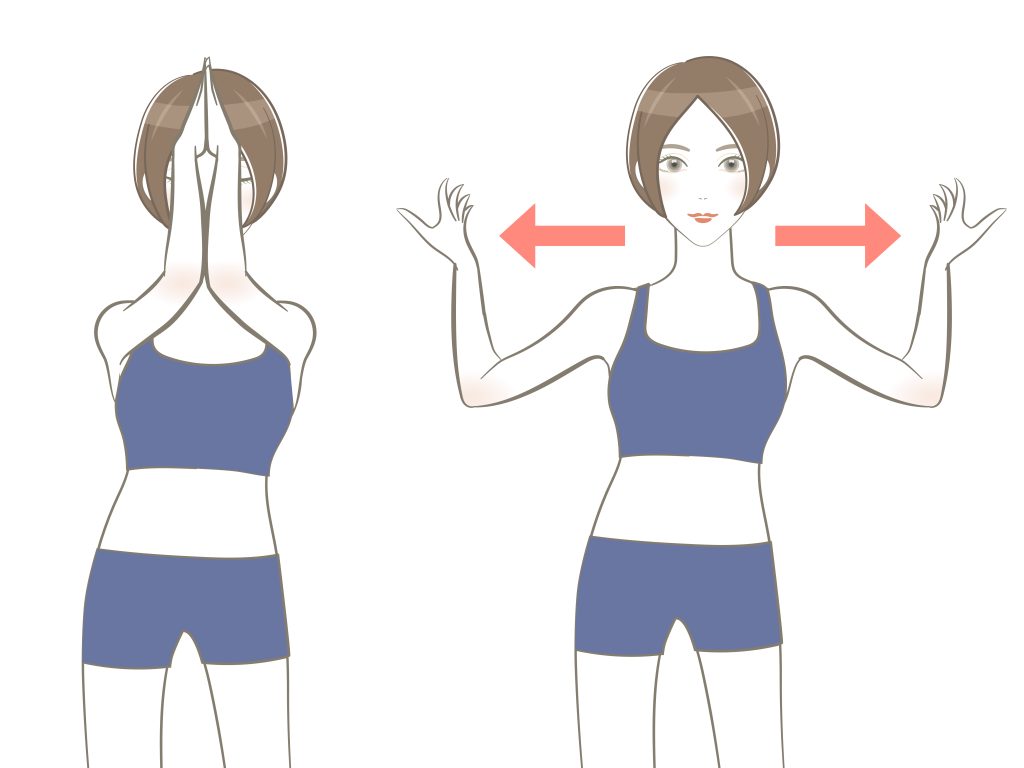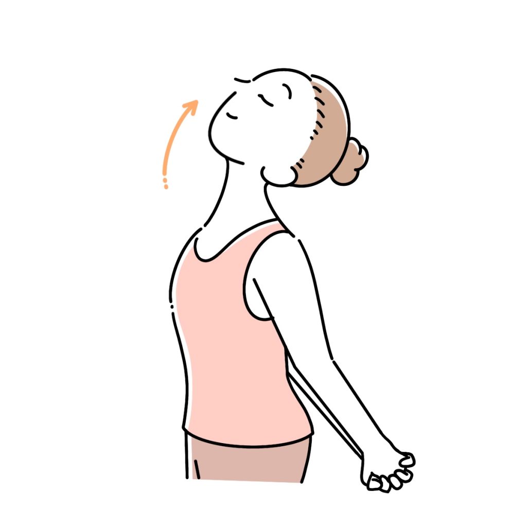 両手を後ろで組み、胸を張るように腕を後ろへ伸ばす。